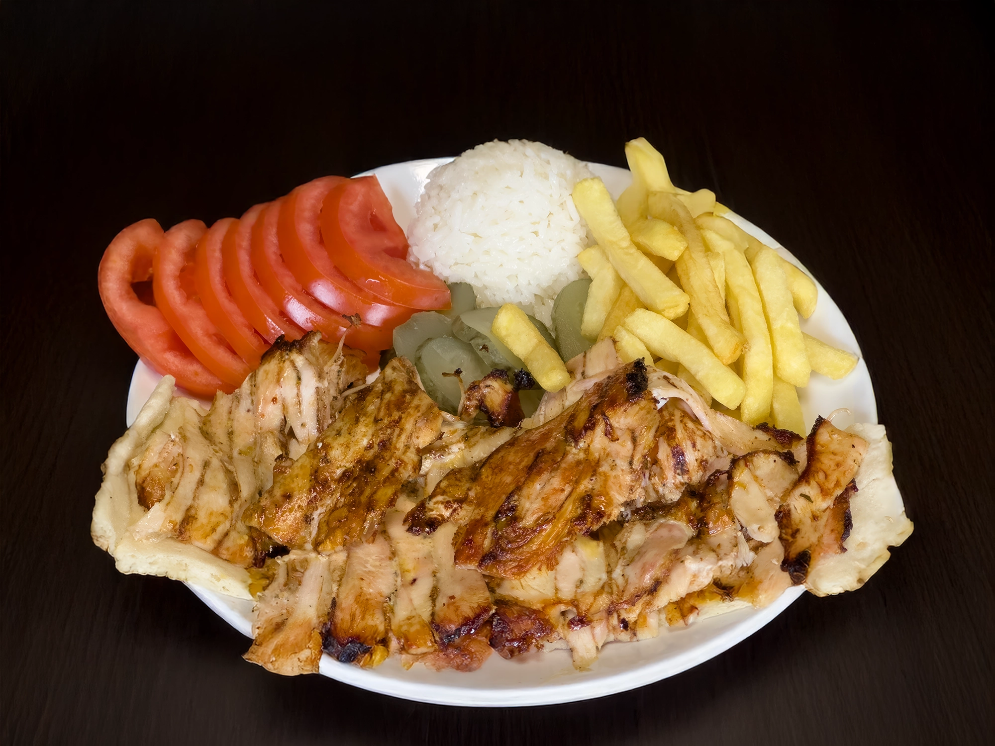 (Cips, Domates, Turşu, Pilav ve Lavaş ile servis edilir)